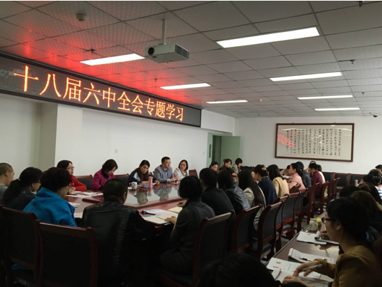 在党的十八届六中全会召开前夕,我院组织全院党员干部进行了一次“十八届六中全会核心内容”的学习,会议由总支副书记符容胜主持,院班子成员、中层干部参加了专题学习。 专题学习会主要学习了即将召开的十八届六中全会的核心内容,通过提前学习,我院全体党员干部了解了中国共产党召开十八届六中全会的重要意义,为进一步学习全会精神,用全会精神指导妇幼计生工作打下了坚实的基础。