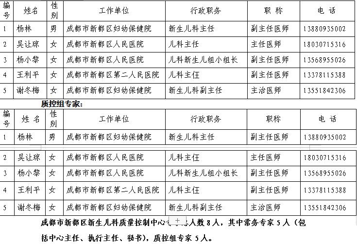附:成都市新都区新生儿科医疗质量控制中心专家库名单